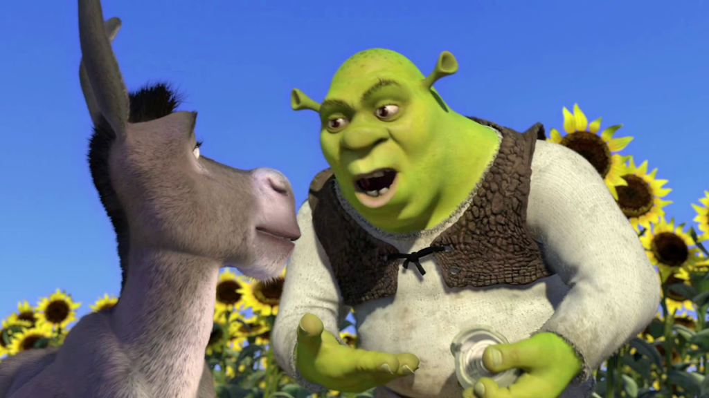 I dialogen mellom Shrek og Esel får vi se hva Esel forbinder med løk og i forlengelsen Shrek, men Shrek insiterer på at det viktigste karaktertrekket med løken er at den har flere lag. Esel foreslår at det hadde vært bedre å være noe som alle liker, som for eksempel kaker eller tress-is, men i sinne utbryter Shrek at han ikke bryr seg om hva alle liker. Men sentralt for Shreks karakter er hva andre syns om ham. Jeg tror han bryr seg om hva andre liker, men for ham så er troll løk.